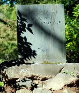ドイツの世界的建築学者ブルーノ・タウトが昭和初期にこの洗心亭洗心亭は昭和2年八幡村の農業改良の指導に来ていた佐藤寛二東京農業大学総長が建てた別荘で当初は四方がよく見渡せる絶景地なので、それをもじって「紫峰荘」と名付けられました。その後当寺に移管され、先々代大蟲和尚によって「洗心亭」と名前を変えました。井上房一郎氏はこの建物が空いていることを聞きつけて、タウトを案内したといわれる。当初は3ヶ月100日の約束であったのですが、タウトはこの環境を気に入り、2年3ヶ月住むことになったのです。 に居住されていました。タウトは、ここで日本文化をあらゆる面から研究し日本国内外に広めた功績は実に偉大です。庭には、タウトの「私は日本の文化を愛する」とドイツ語で書かれた記念碑があり、群馬県の史跡になっています。